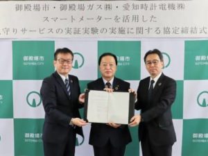静岡ガス㈱(岸田裕之社長)のグループ会社である御殿場ガス㈱(池上司社長)は、御殿場市や愛知時計電機㈱と『スマートメーターを活用した見守りサービス実証実験の実施に関する協定』を締結した。3月上旬から約1年間、御殿場市内の高齢者世帯7戸を対象に、水道と都市ガスの使用量データから生活動向を24時間確認し、高齢者の暮らしを見守る実証実験に参画する。