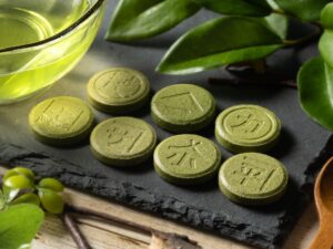 ㈱オリーブ(富士市中野614─14、金森汐里社長)は、富士・富士宮で生産された茶葉を原料にタブレット状に固形化した“たまちゃ”を開発し、販売をはじめた。富士・富士宮の茶農家7人で構成されるPGT協議会と製茶機械販売の㈱金森機械(富士市中野614─14、金森直人社長)が持つ独自の加工技術を使って茶葉100%で無添加のタブレット(特許出願準備中)を製造し、真空パックに密封した。そのため、いつでもリーフで飲むお茶と同じ風味や香りが楽しめるほか、レモングラスなどを配合した“たまちゃ”もあり、若い女性を中心に人気を集めている。