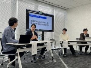 東京都内とオンラインのハイブリッド方式で行われたセミナーには報道関係者が多数参加。セミナーは2部構成で行われ、第1部で国土交通省 住宅局 住宅総合整備課 住環境整備室長の石井秀明氏が「改正空家法を徹底解説」をテーマに講演した。第2部では、空き家買取専科の黒田淳将氏、クラッソーネの堀口晃司氏、アドレスの坪山励氏、カチタスの森川晶氏の4人が「空き家のプロが語る!法改正後の影響とは?」と題したトークセッションを行った。