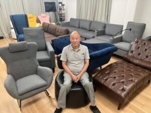 江蘇謝万家具の日本の窓口として新設した同社は、日本企業からのOEMや卸販売、小売などを中心に対応する。現在、既製品(江蘇謝万家具のオリジナルブランド)を日本人向けに規格を変えるなどして準備を進めている。6月には、シズオカ[KAGU]メッセ2024に出展しソファー数点をお披露目した。本社は現在ショールームと事務所を兼ねており、実際に目で見て座ることも可能だ。