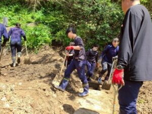 被災地へ向かう道中、選手たちはその被害の大きさを改めて認識。到着後、住民からは感謝の言葉が述べられた。特に、土砂崩れで機能不全に陥った水路の復旧作業や、土砂に埋もれた墓石の撤去、家屋周辺や道路の清掃などを重点的に行った。想像をはるかに超える困難な作業ではあったものの、選手たちは協力して水路を確保し、墓地や家屋周辺を清掃した。上水道が復旧していないため、泥だらけになった道具は川の水で洗浄したという。現地住民からは「ずっと絶望していたけど、皆さんの応援が僕たちの力になりました」と感謝の言葉が寄せられた。