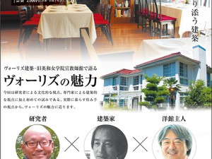 静岡市葵区西草深に佇む洋館「旧英和女学院宣教師館」。日本で数多くの西洋建築を手がけたウィリアム・メレル・ヴォーリズの作品だ。築65年にもなるこの洋館で「暮らしながら保存」をテーマに2013年から暮らす榎戸基人・真弓夫妻。今年5月、この洋館だからこそできる食事会、ウェディング、イベントなど、様々な集いを行うレストラン「ミス・カニンハム」をオープンした。10月26日には同館で「ヴォーリズの魅力」をテーマに大学教授、建築家、住み手の榎戸基人氏がそれぞれの立場でヴォーリズ建築について語る。会費は2000円(お茶・お菓子付き)。