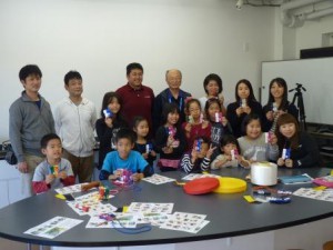 本橋テープ㈱の酒井英字(ひでつぐ)さんが講師役を務め、子どもたちはそれぞれ気に入った色のテープにハンダで穴を開け、スタッフに手伝ってもらいながら紐を通してコインケースを完成させた。会員の柳原寛幸さん(丸忠細巾織物工場代表)は「講座を通じて、子どもたちが地場産業に興味を持つようになればうれしい」と話していた。