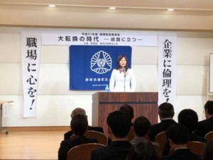一般社団法人倫理研究所静岡市倫理法人会(高橋みほ会長)は4月19日、江崎ホールで毎年恒例の『倫理経営講演会』を開催した。 当日は、同会役職者による活力朝礼の実演と、森本宏氏(一般社団法人倫理研究所)による講演が行われた。活力朝礼は,倫理研究所が毎月発行する「職場の教養」を利用した朝礼だ。同朝礼を取り入れた企業経営者からは、「社員のやる気が高まった」、「職場のコミュニケーションが円滑になった」など高評価を得ている。 森本氏の講演では,年1回の家庭訪問を行う社長との心の触れ合いを通じて変化した社員の実例を紹介。リーダーとして持つべき5つの判断基準も示した。 静岡市倫理法人会では毎週土曜日朝6時30分からホテルアソシア静岡でモーニングセミナーを開催している。5月11日には㈱たこ満の平松季哲社長が登壇。今後は6月1日に札幌市より歌原ゆか社長を招いて特別モーニングセミナーを開催するほか、6月15日には㈱田子の月の牧田桂輔社長が講演する予定だ。 ●問い合せ、054・207・7927