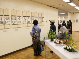 書道や油絵、日本画など同学園の文化部門の講座で普段腕を磨いている受講生の作品展で、前述のほかアレンジ生花、ビーズアクセサリー、実用書道、かな書道、水彩画など全部で131点を展示。川森園長は「この日のために皆さんが一つ一つ心を込めてつくった」と日頃の成果を称賛した。