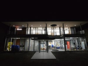 内勤者だけでなく〝製造現場のスタッフも昼食や休憩を心地の良い空間で過ごしてほしい〟という考えのもと、建物の2階に広い食堂(休憩室)を設けた。食堂の隣にある会議室は必要に応じて、パーテーションを開放することで、最大106人を収容できるセミナールームとして、勉強会や入社式など、社内行事を行うことができるようにした。応接室と事務所フロアを仕切る壁もガラス張りにし、社内の様子をうかがいながら商談や打ち合わせを行えるようにしている。「来ていただいたお客さまに、〝こうしたきれいな事務所ならば、きれいな仕事をしてくれるに違いない〟。また求職者の人たちに〝きれいな職場で働きたい〟と感じてもらえると、とてもうれしく感じます。天井裏には出雲土建㈱の湿気がある時は水分を吸収し、乾燥している時は水分を排出する調湿木炭を敷き詰めました。ようやく夢がかないホッとしていまが、社員や来社される方にとって、居心地の良さを感じてほしいと考えております」と村田社長は話している。