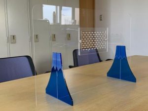 『キコパ』は、静岡県経営革新計画承認、静岡県トライアル発注推進事業認定商品、静岡市新商品等開発事業補助認定を受けており、企業や店舗はもちろん、県や市などの公共施設にも販路を広げていく方針だ。「アクリル板を支える二つの脚は形状を変えたり、地域の名所や名産品、企業や商品ロゴをデザインしたりすることも可能です。感染のリスクを抑えるだけでなく、PR商材としても活用して欲しいと考えています」。