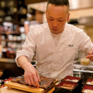 今年10月に移転オープンしたITAMAE朝太郎。〝お客さまを最大限におもてなししたい〟と考え、カウンター席のみ、メニューはおまかせコースとし、料理の提供を一斉に開始するスタイルにした。退店時に次の予約を入れる常連客が多いが、おまかせとした以上、いつ来ても、何度来ても、来店客の期待を上回る料理の提供と接客を心がけている。